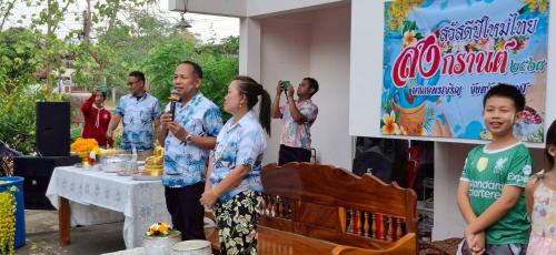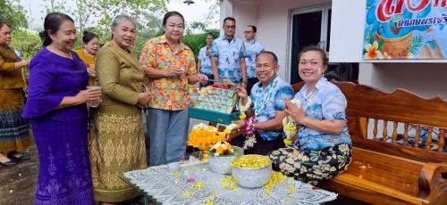 ภาพกิจกรรมรดน้ำดำหัวขอพร ท่านนายอำเภอพรเจริญ (นายมนตรี จารุธำรง) เนื่องในโอกาสวันขึ้นปีใหม่ไทย และเทศกาลสงกรานต์ ประจำปี 2568 ?️ วันพุธ ที่ 9 เมษายน 2568 เวลา 16.00 น. ณ บ้านพักท่านนายอำเภอพรเจริญ จังหวัดบึงกาฬ